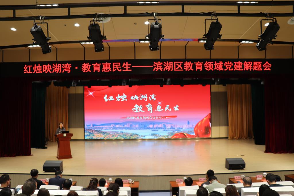 10月22日,“红烛映湖湾,教育惠民生——滨湖区教育领域党建解题会”在南京师范大学滨湖实验学校蠡湖小学部举行。无锡市委教育工委副书记高枫、市教育局组织处处长华莉莉,98堂