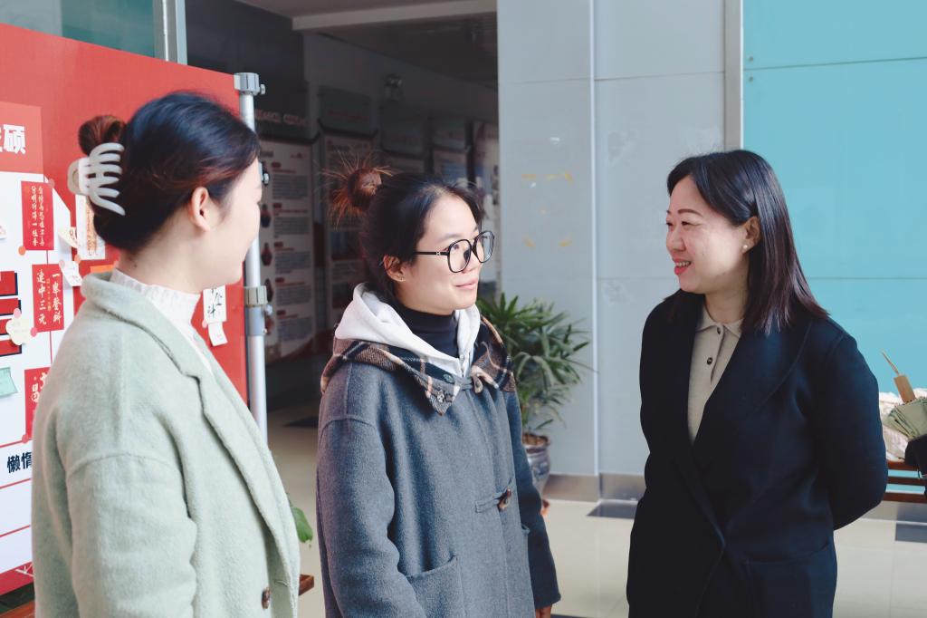 王晖在现场与考研学子们亲切交流,细致询问了同学们的复习进度、生活安排及心理状态,对大家目标明确、踏实备战的努力表示赞许。她表示,学院始终是同学们的坚实后盾,将持续关注考研学生的需求,在复习资源、心理疏导、后勤服务等方面提供全力支持,助力大家安心备考、顺利赴考。张春梅叮嘱同学们在最后冲刺阶段要劳逸结合,保持身心健康,同时坚定信心、稳扎稳打,将平时的积累转化为考场的从容。同学们深受鼓舞,纷纷表示将铭记师长的嘱托与关怀,以更饱满的热情和更沉稳的心态投入学习,全力以赴。