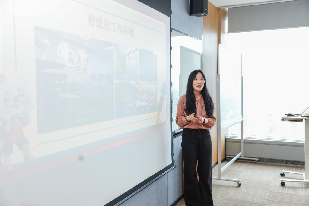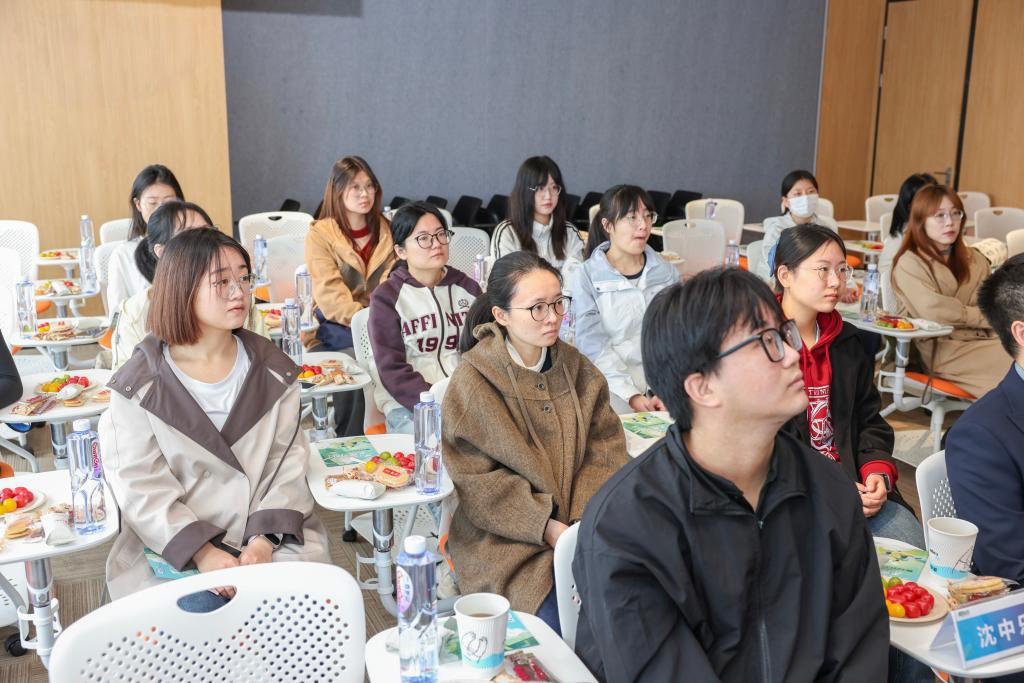 一行的到访表示热烈欢迎。王洪蕾详细介绍了新东方无锡学校的核心业务领域、当前的招聘需求以及完善的人才培养与发展体系。周毅伟结合自身经历分享职业发展现状以及入职体会。