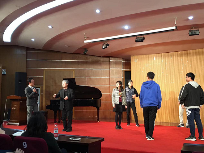 3月23日晚,日本国立音乐大学教授神原雅之在北活音乐厅与音乐系师生们进行了深入的交流。首先,神原雅之教授达克罗兹教学法的来源与创始人进行详细的介绍,并称“律动”是达克罗兹教学法的精髓,神原雅之教授表明自己喜欢小孩子,所以对如何与小孩子沟通与玩耍有了更多的动力。 接下来神原雅之教授说到达克罗兹教学法的受众人,谈及上至老人下至幼童都能深受此教学法的益处,他聊到成人往往是先知再行,相反,儿童则是先行后知...