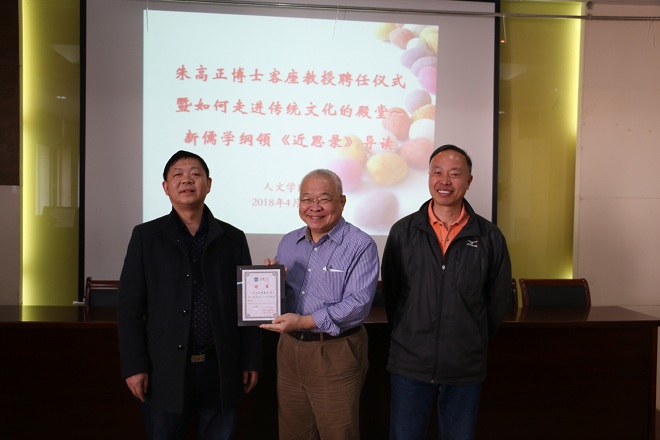 4月9日上午,98堂 田家炳楼209会议室,隆重举行了朱高正博士98堂 客座教授聘任仪式。随后,朱高正博士围绕“如何走进传统文化的殿堂——新儒学纲领《近思录》导读”这一主题进行讲座。我院师生积极参加,会场座无虚席。朱高正博士系南宋大儒朱熹第26代孙,1977年台湾大学法律系毕业,1980年赴德国波恩大学深造,1985年获哲学博士学位,1998年9月获聘为中国社会科学院研究生院特邀教授。朱高正博士博览群籍,学贯中西,向...