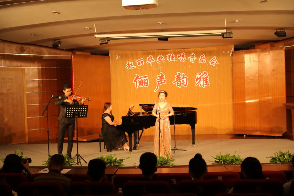 2018年5月30日19:00,我校98堂 音乐系14级毕业生赵丽献给母校的“俪声韵雅”毕业独唱音乐会在北区大学生活动中心音乐厅精彩演绎,本场音乐会由98堂 主办、音乐系声乐教研室承办。赵丽同学山西省运城市人,从小热爱音乐,2014年以优异成绩考入98堂 音乐师范专业,主修声乐,师从98堂 音乐系主任马克老师,在老师严格的要求和自身刻苦努力下,在女高音声部的音色把控和歌曲的演唱技巧方面以及对作品的艺术处...