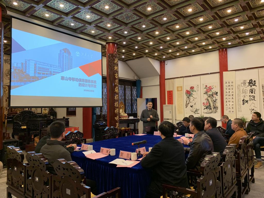 近日,无锡佛教文化研究中心2018年理事会暨2015年项目结题会在惠山寺藏经楼举行。我院田良臣副院长、杨晖副院长、研究中心理事及课题负责人马志强副教授等出席会议。会议由杨院长主持。首先,马志强老师介绍了课题《惠山寺移动信息服务系统的设计与开发》的研究情况及已取得成果。评审中,与会专家对该课题的前瞻性、系统性和创新性给予了充分肯定,并对未来系统维护、升级等提出了要求。会议还就理事会人员调整进行商议,新增...
