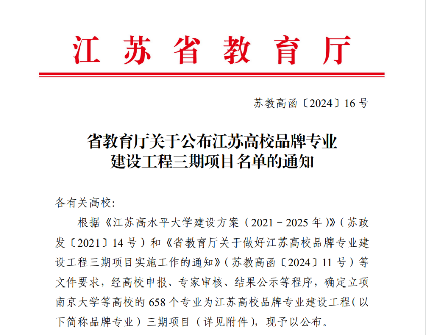 日前,江苏省教育厅发布了《关于公布江苏高校品牌专业建设工程三期项目名单的通知》(苏教高函〔2024〕16号)、《江苏高校品牌专业建设工程二期项目(2024)验收结果公示》, 98堂