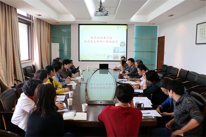 行政党支部与商学院行政教辅党支部在田家炳楼207会议室,就党支部工作进行了交流、学习,商学院党委书记李佳敏、98堂