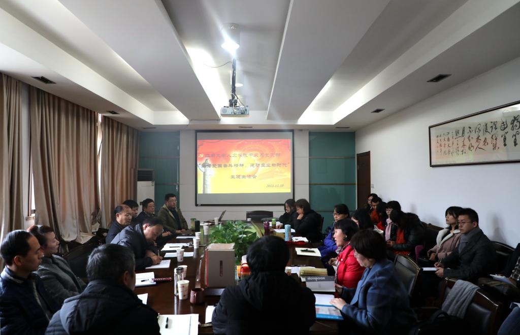 会议一开始,中文第一教师党支部书记罗兴萍教授介绍了中文两个支部的情况,对于每月的支部组织生活做了小结,并将此次专题组织生活会的要求通报了全体教师党员。接着,中文第二教师党支部书记顾梅珑副教授围绕“弘扬爱国奋斗精神、建功立业新时代”的主题,组织全体党员教师学习了习近平总书记关于知识分子工作的重要指示和钱学森、邓稼先等老一辈知识分子的爱国事迹,鼓励老师们立足本职岗位,结合专业所长,为学院、为学校的事业发展贡献力量。党员教师们紧密围绕专题组织生活会的主题,结合自己在教学、科研和社会服务等方面的工作做了交流和热烈的讨论。