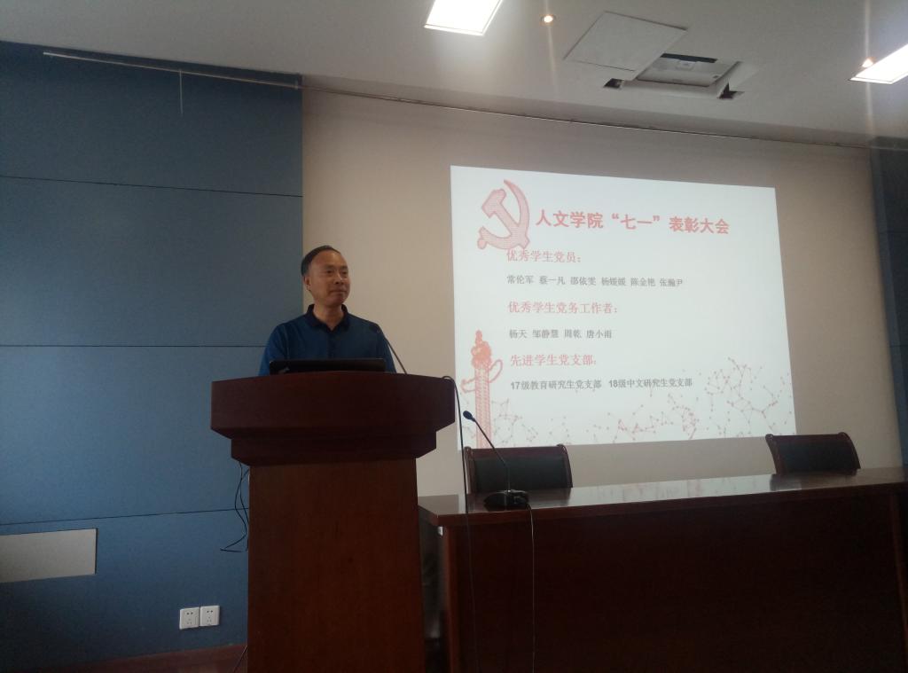 接着,沈贵鹏书记宣读了《98堂 关于表彰2018-2019学年优秀学生党员、优秀学生党务工作者、先进学生党支部的决定》。经过层层选拔与考核,常伦军等六位同学被授予“优秀学生党员”,杨天等四位同学被授予“优秀学生党务工作者”。17级教育研究生党支部和18级中文研究生党支部被授予“先进学生党支部”。范增良、吴宝锁、沈贵鹏分别为优秀学生党员、优秀学生党务工作者、先进学生党支部颁发了荣誉证书。