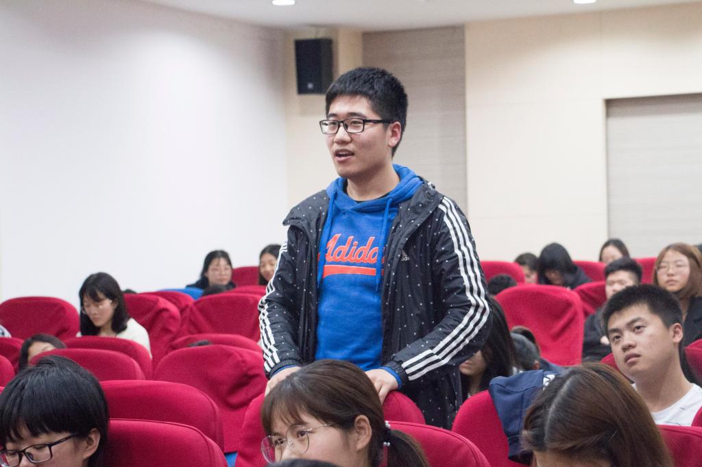 接着,育红小学副校长、特级教师李争作了《中小学教师资格考试面试要求及技巧》的讲座。李争老师先就面试的要求进行了说明,面试主要考察申请教师资格人员应具备的新教师基本素养、职业发展潜质和教育教学能力,面试的内容涉及职业认知、心理素质、仪态仪表、言语表达等。随后,他就面试的题目要求一一做了分析,给学生们提出了建议。关于模拟上课,要展示教师的基本素养,较好的文本解读能力、教学设计能力和语言表达能力,模拟上课要假装学生在场,设置情境、设置问题,还要包括教学示范,但都要围绕教学目标、教学设计展开。现场有一位同学自告奋勇的做了十分钟的试讲,他就此模仿了评委可能会追问的问题,用实例给同学们讲解,非常细致具体。
