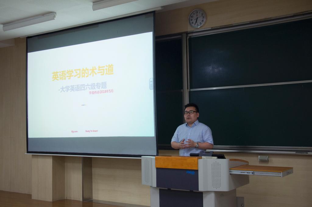 为帮助人文学子更进一步了解英语四六级考试,掌握四六级答题技巧,5月24日晚六点半,我院邀请资深英语培训讲师李现伟,于一教1B103为280余名学生举办了一场大学英语四六级专题辅导讲座。本次讲座由98堂