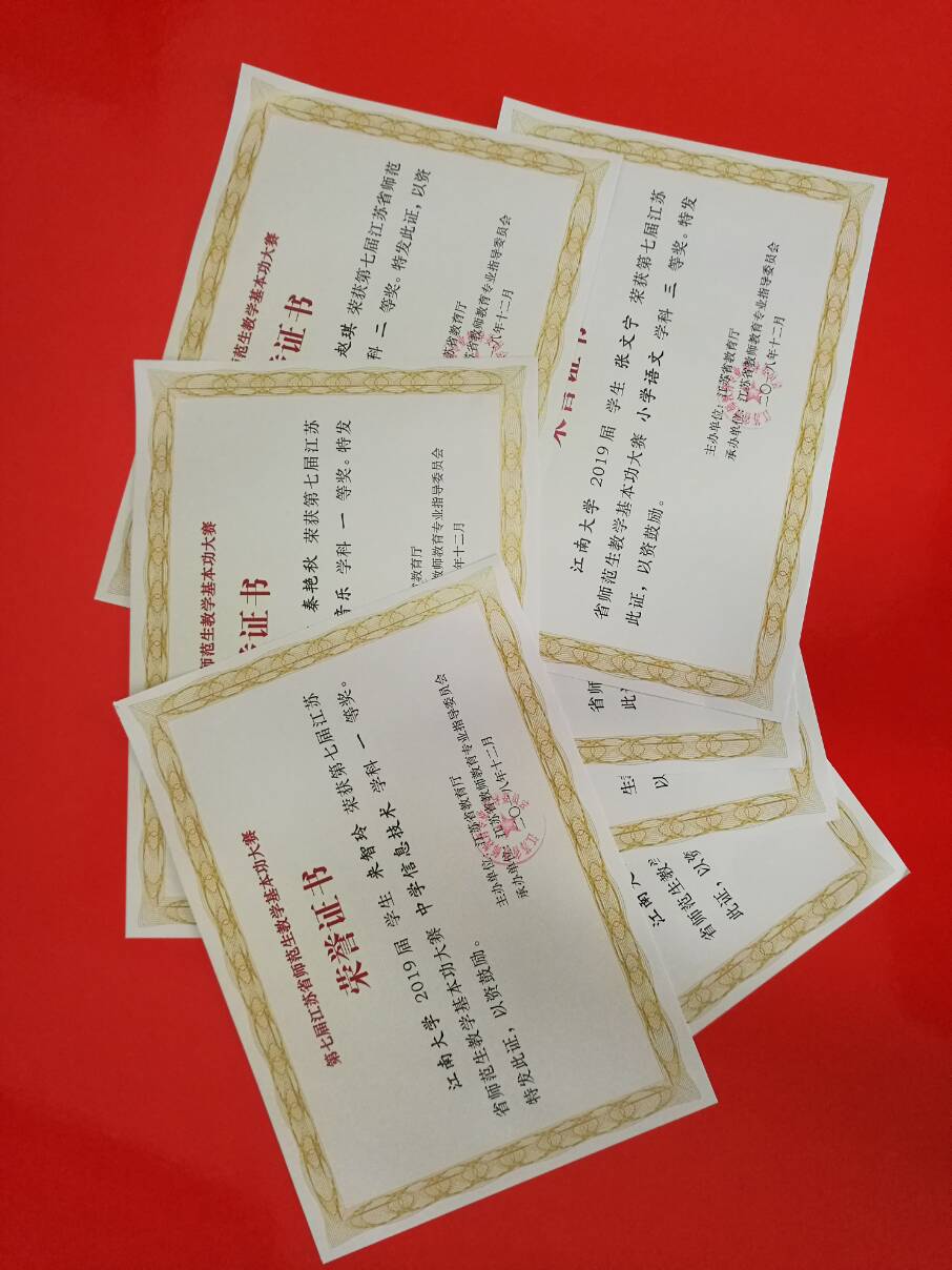 由省教育厅主办、江苏省教师教育指导委员会承办的第七届江苏省师范生教学基本功大赛已于日前圆满结束。我校来智玲等7位同学分别在信息技术、音乐、语文、美术等学科中获一等奖2项、二等奖1项,三等奖4项,我校获优秀组织奖。