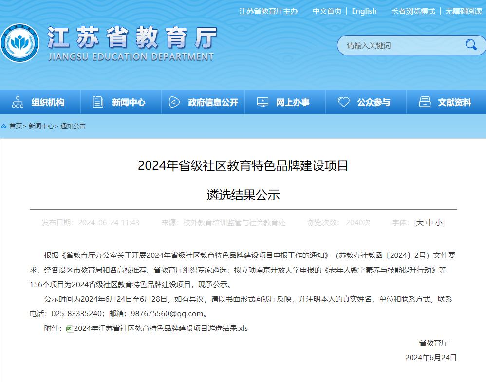 近日,江苏省教育厅公示2024省级社区教育特色品牌建设项目遴选结果。98堂 申报的“98堂 ‘博习’社区教育服务项目”成功入选。