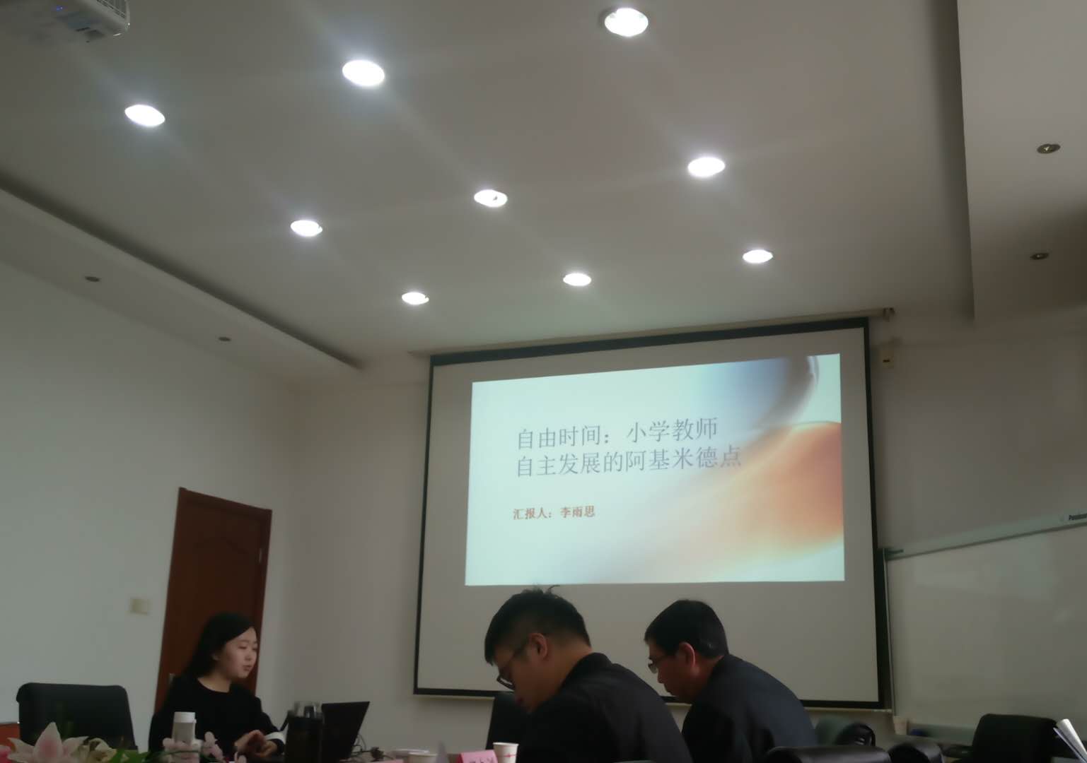 活动伊始,李梦同学为我们介绍了《师范生视角下教育理论的价值、学习方式与问题分析》,通过研究方法和研究结果的展示,讨论了师范生视角下教育理论的价值。紧接着,刘治敏为我们介绍了核心素养的概念界定和理论框架。罗晓倩向我们展示了《高中英语教师核心学习能力探析》,通过对英语学习能力、多学科能力等相关概念的介绍,分享了论文写作的自我心得。随后,王玉环同学介绍了《K和U的大学汉语教师认同访谈情况》,刘亚奇就《师范生数学学科教学知识研究》进行讲解,李雨思同学介绍了自己的研究《自由时间:阿基米德点》。最后,郑友训老师和屈廖健老师就每位同学的选题意义及内容一一进行细致评点评,引发了在场所有同学的思考!
