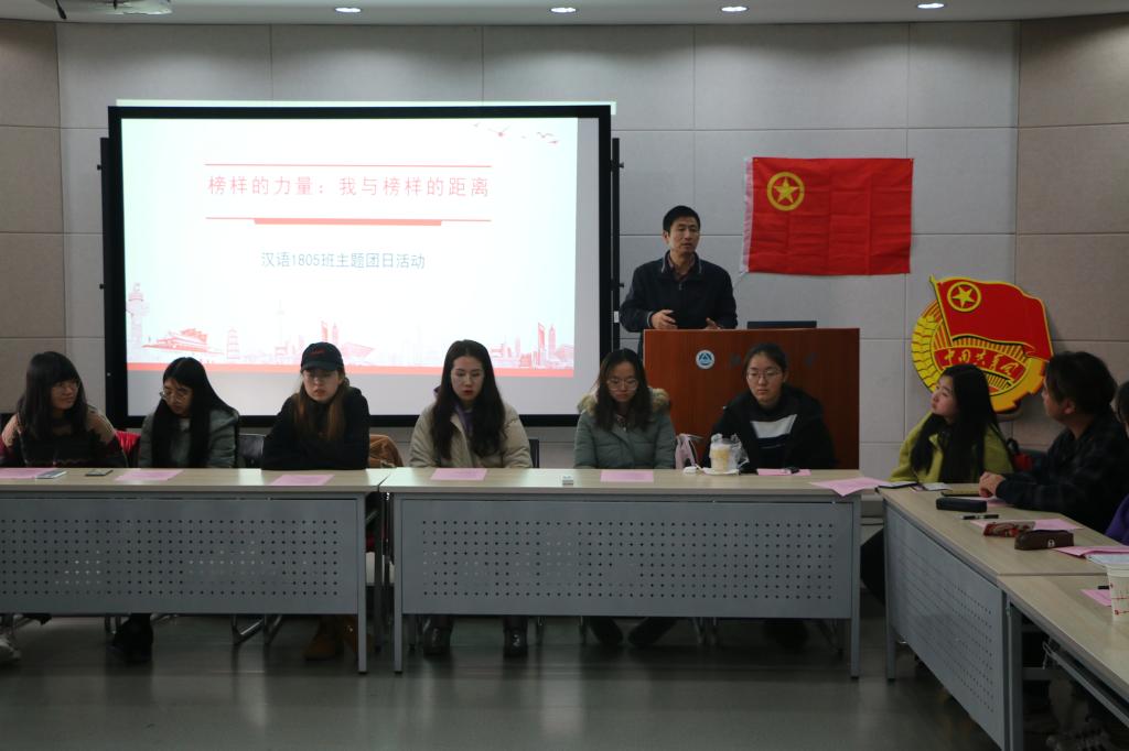 汉语言文学1805班“榜样的力量:我与榜样的距离”主题团日活动在田楼506室进行。校党委副书记戴月波、学生工作处处长张菁燕、校团委书记王维、98堂