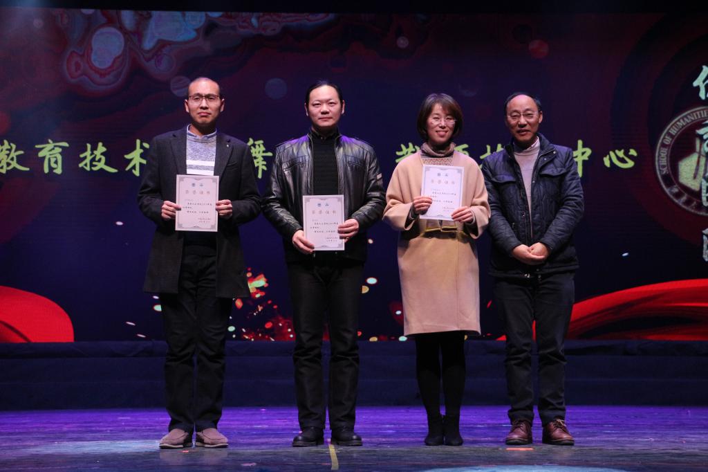 首先,颁发的是服务育人奖。获得服务育人奖的教师有:魏建新、殷越、范增良、刘学勤、魏形峰、陈甜甜。学生工作部部长张菁燕为获奖教师颁奖。接下来由党委教师工作部部长徐锡清颁发了青年教师学术进步奖。获得青年教师学术进步奖的教师有:钱逸舟、张剑心、谢坤、候侠、朱磊。随后,社会科学处处长刘焕明,人事处处长王鸿博颁发了科研贡献奖。获得科研贡献奖的教师有:牟智佳、屈廖健、史应勇、颜庆余、沈雷强。而后,颁发了教书育人奖。获得教书育人奖的有:王均霞、屈博、刘桂秋、叶凌飞、马克。校长助理,校长办公室主任张光生为获奖教师颁奖。本次颁奖环节的最后,颁发了优秀团队奖。获得优秀团队奖的有:教育技术系、舞蹈系、教师技能中心。校党委常委、党委办公室主任、党委统战部部长朱飞为获奖团队教师代表颁奖。