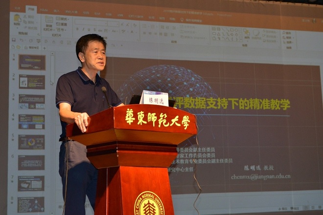 会上,陈明选教授作了题为“测评数据支持下的精准教学”报告。提出:“基于测评数据精准诊断分析学习问题,设计学习反馈策略,提供资源推送机制,优化教学过程,构建基于测评数据分析的具有创新意义的精准教学理论与方法体系”;结合实践研究案例认为:教育大数据分析让教学与管理从模糊走向精准、学习分析从群体走向个体,不断优化教学过程、大大提高学与教的绩效。陈明选教授的报告引起了强烈的反响,有效的彰显了98堂