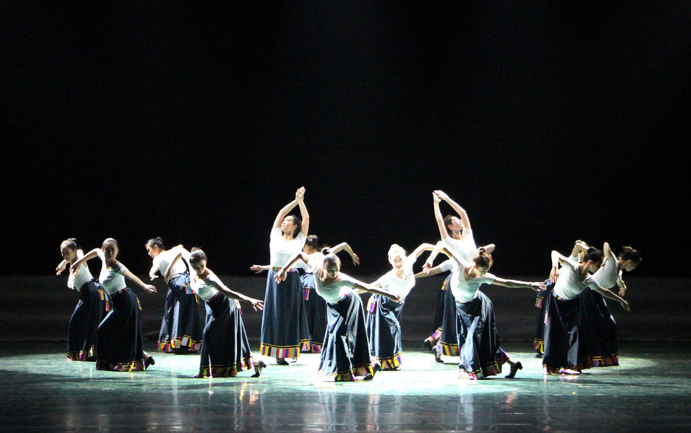 课堂部分展示了芭蕾舞、现代舞、民间舞、古典舞中十三种各具特色的舞蹈,展示了14级舞蹈编导学生扎实的舞蹈能力。风格迥异的民间舞蹈集民族特色与舞蹈艺术于一体,运用常见的手绢、水袖等道具,使得表演更具美感、气氛和感染力。台上一分钟,台下十年功。毕业晚会上的精彩表现,是14级舞蹈编导同学对大学生活的告别,也是他们对大学里那些勤奋练舞的日子致敬。