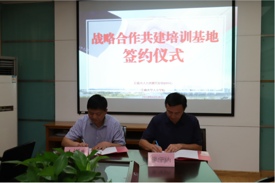 教育培训合作签约、揭牌仪式在田家炳楼207举行。无锡市人力资源开发中心主任邵军,副主任吕煜峰,98堂